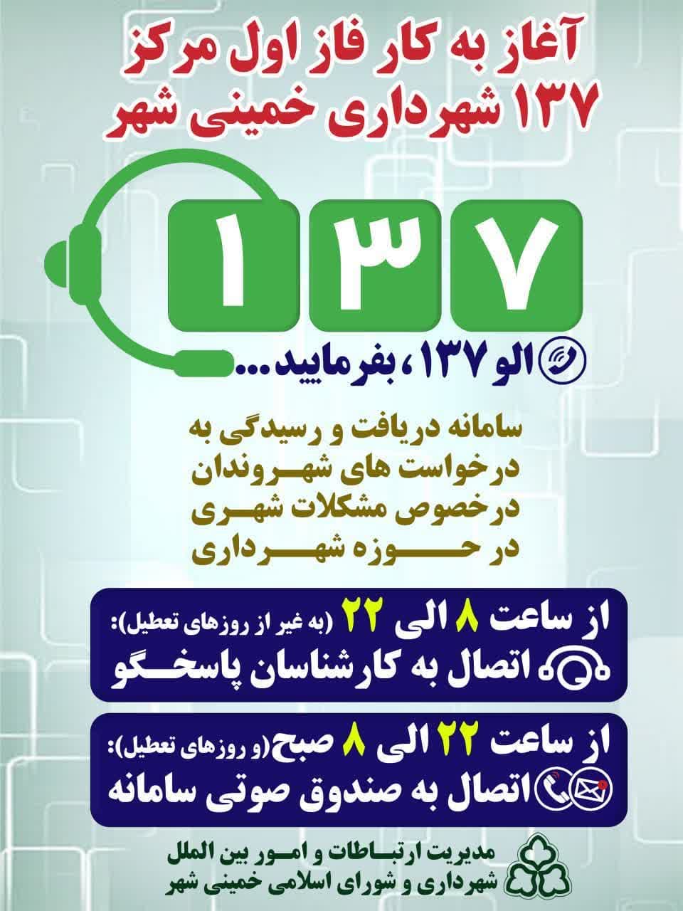 برای تماس با مرکز پاسخگویی ۱۳۷ شهرداری خمینی شهر کافی است: