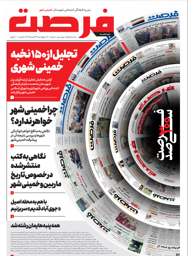 ✅ شمارۀ 300 نشریۀ فرصت خمینی شهر