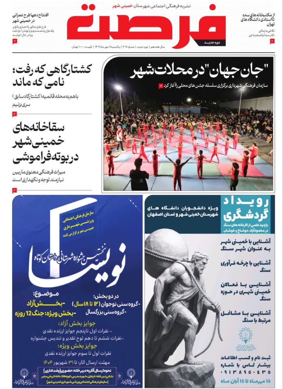 307مین شمارۀ نشریۀ فرصت خمینی شهر منتشر شد.
