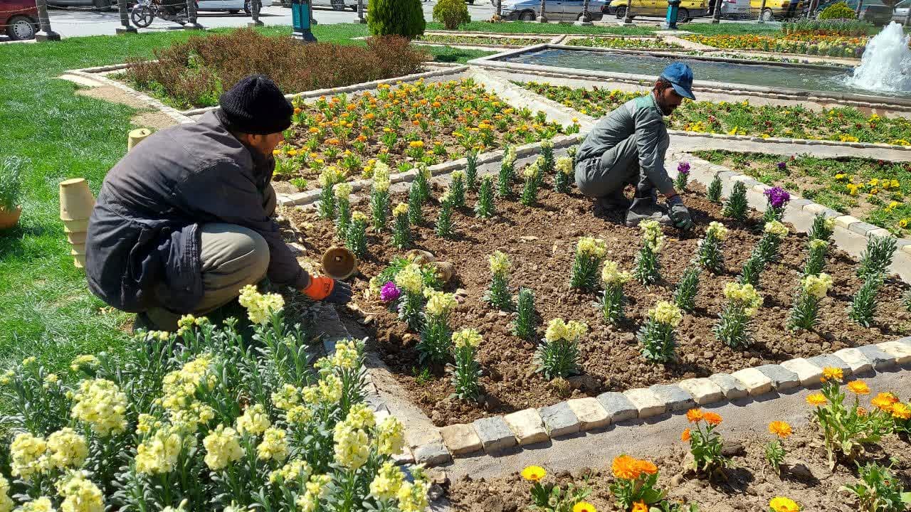کاشت یکصد هزار عدد گل شب بو و فصلی در خمینی شهر