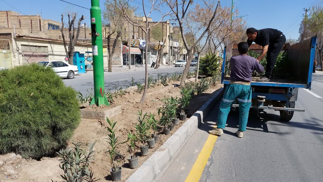 ۴_ کاشت بیش از ۲۰۰۰۰ اصله انواع درختان و درختچه های زینتی مقاوم به خشکی و سازگار با اقلیم منطقه در پارک ها ، بلوارها و خیابان های سطح شهر