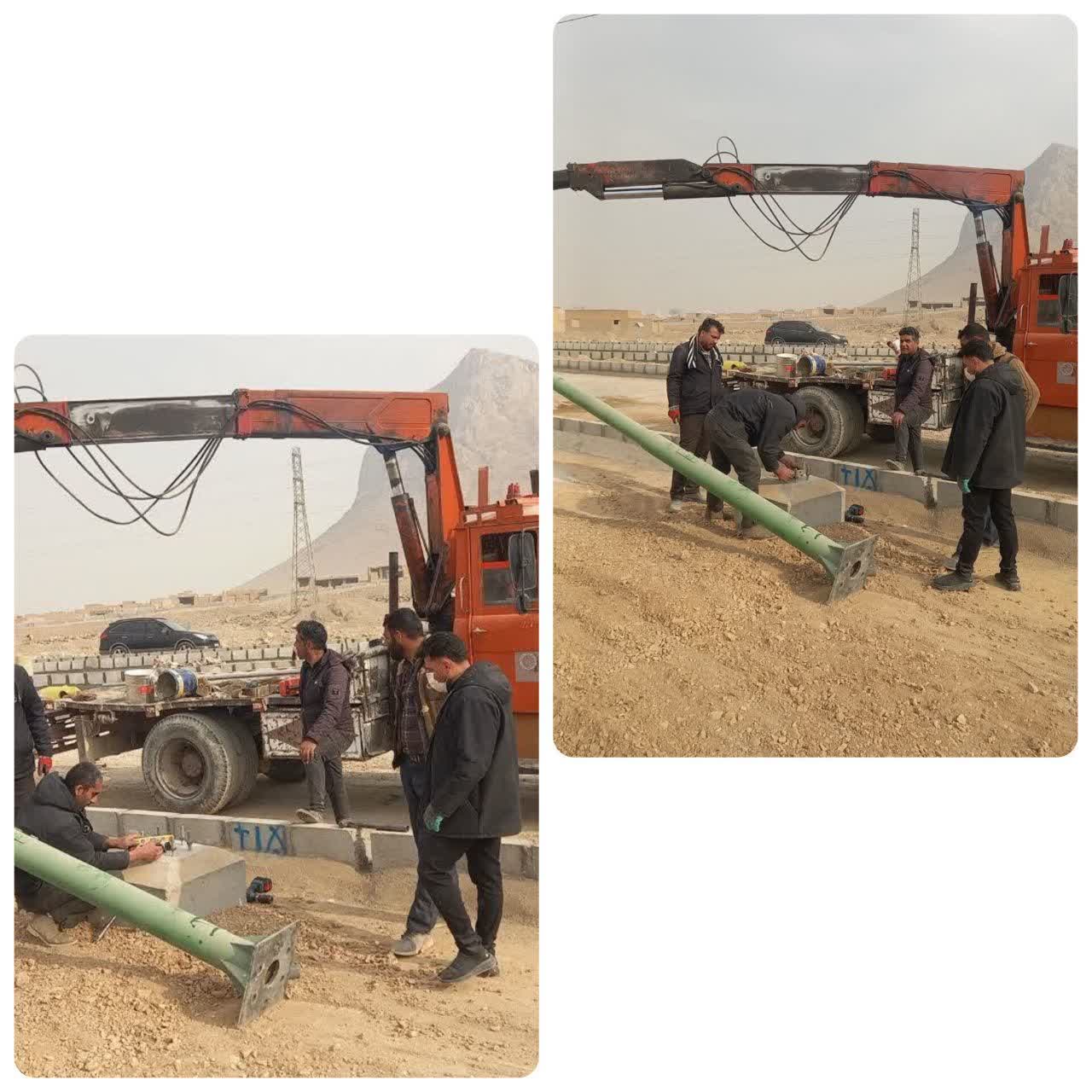 نصب پایه های روشنایی کمربندی نجف آباد اصفهان