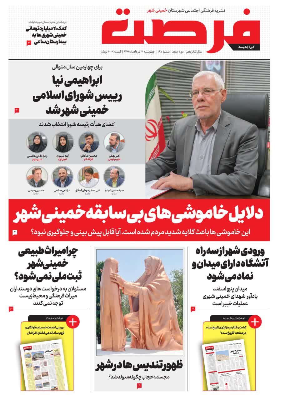 297مین شمارۀ نشریۀ فرصت خمینی شهر منتشر شد.